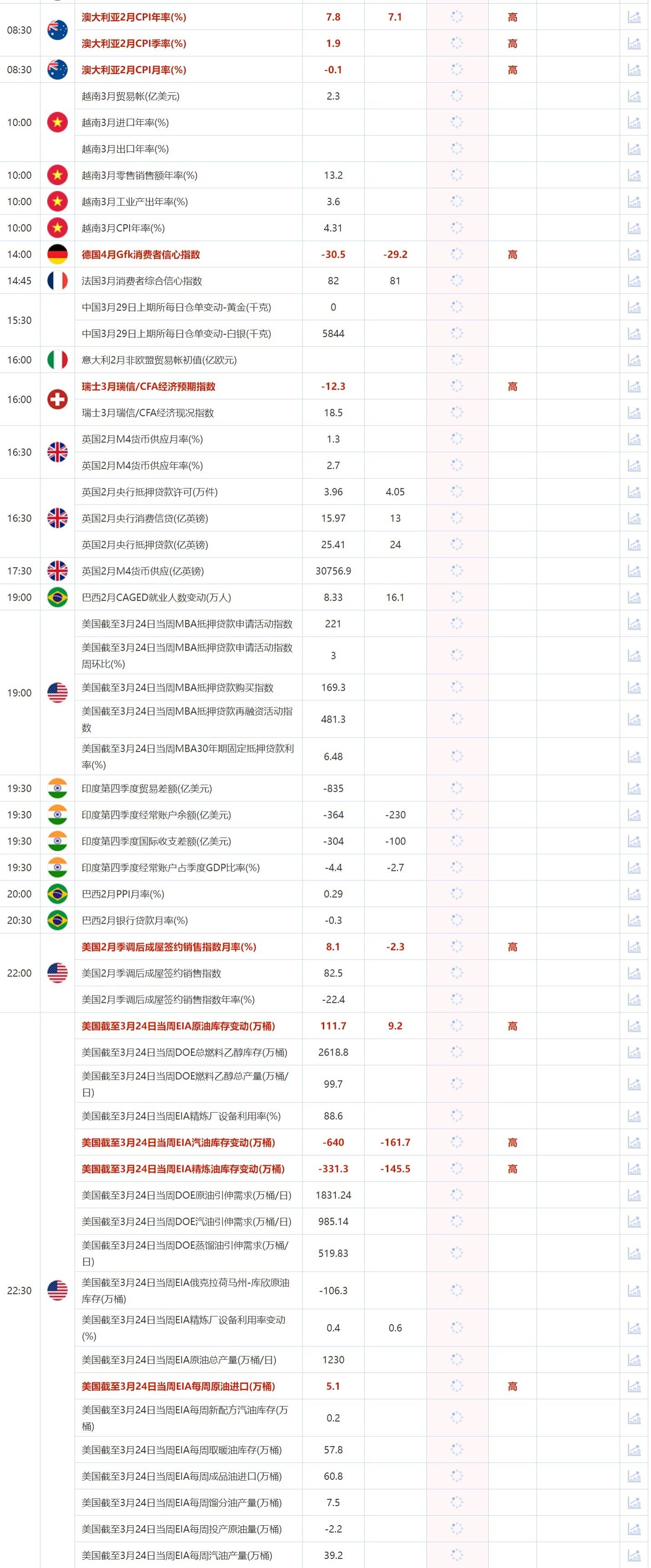 后续及时更新的财历数据请关注:【汇通网3月29日财经日历】