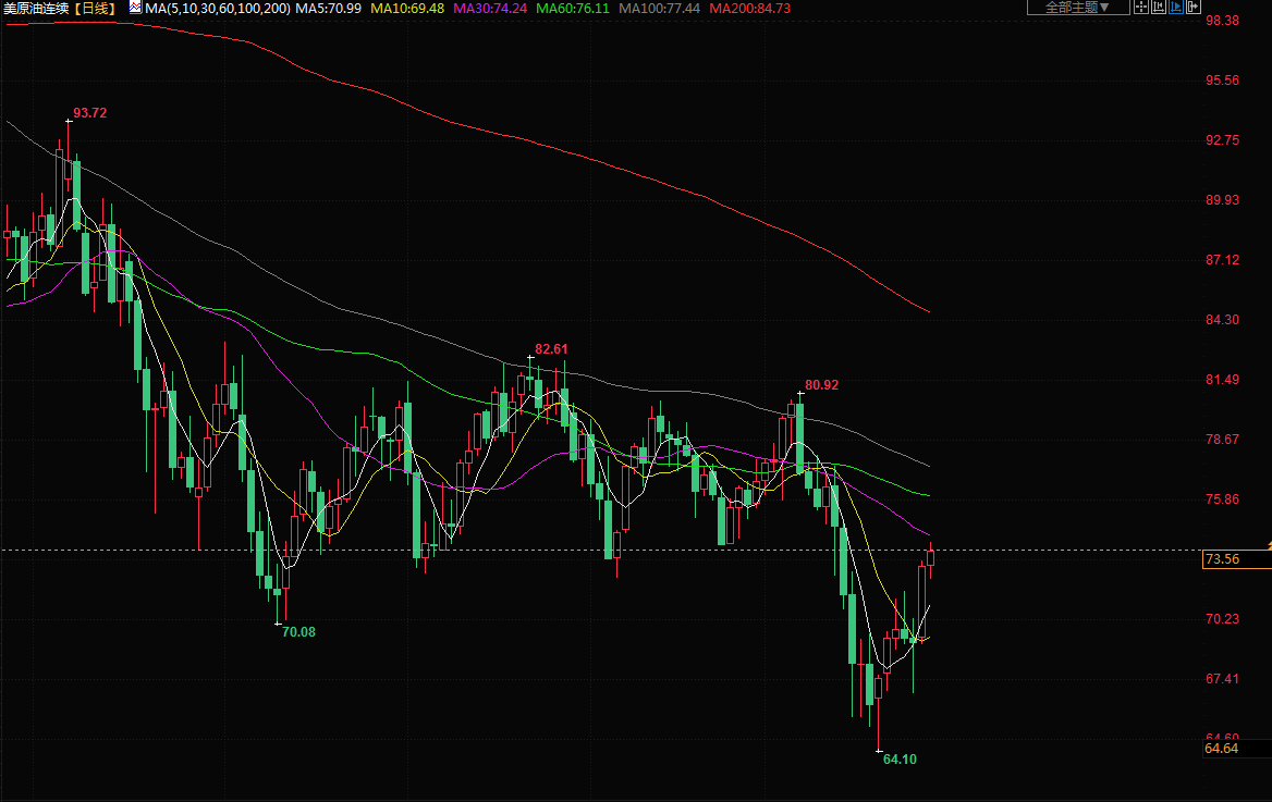 商品收盘情况:美国期金收高1%,报1973.50美元;布伦特原油期货结算价报每桶78.65美元,上涨0.7%。美国原油期货结算价报每桶73.20美元,上涨0.5%。