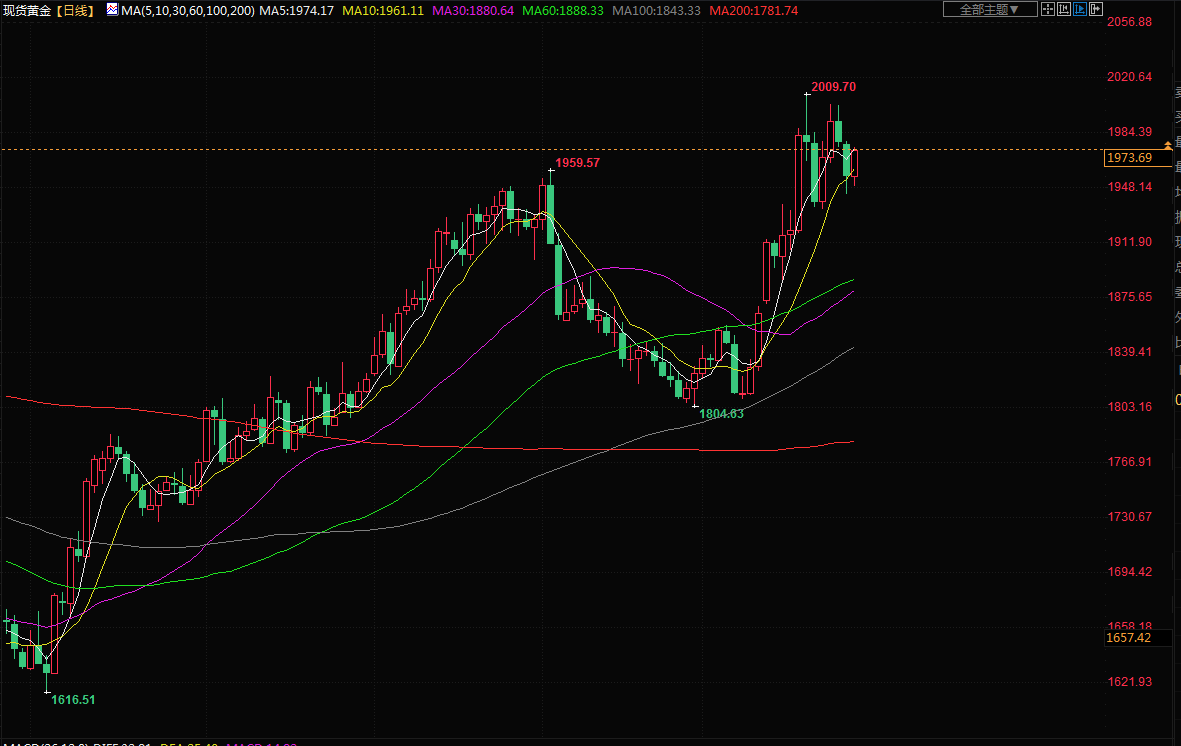 盛宝银行大宗商品策略主管Ole Hansen表示,在短期内,金价可能下滑至1933美元,但由于美国利率将很快达到峰值,且未来几个月有遭遇衰退的危险,黄金的前景依然看涨。
