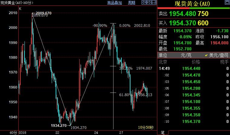 现货黄金下看1938美元