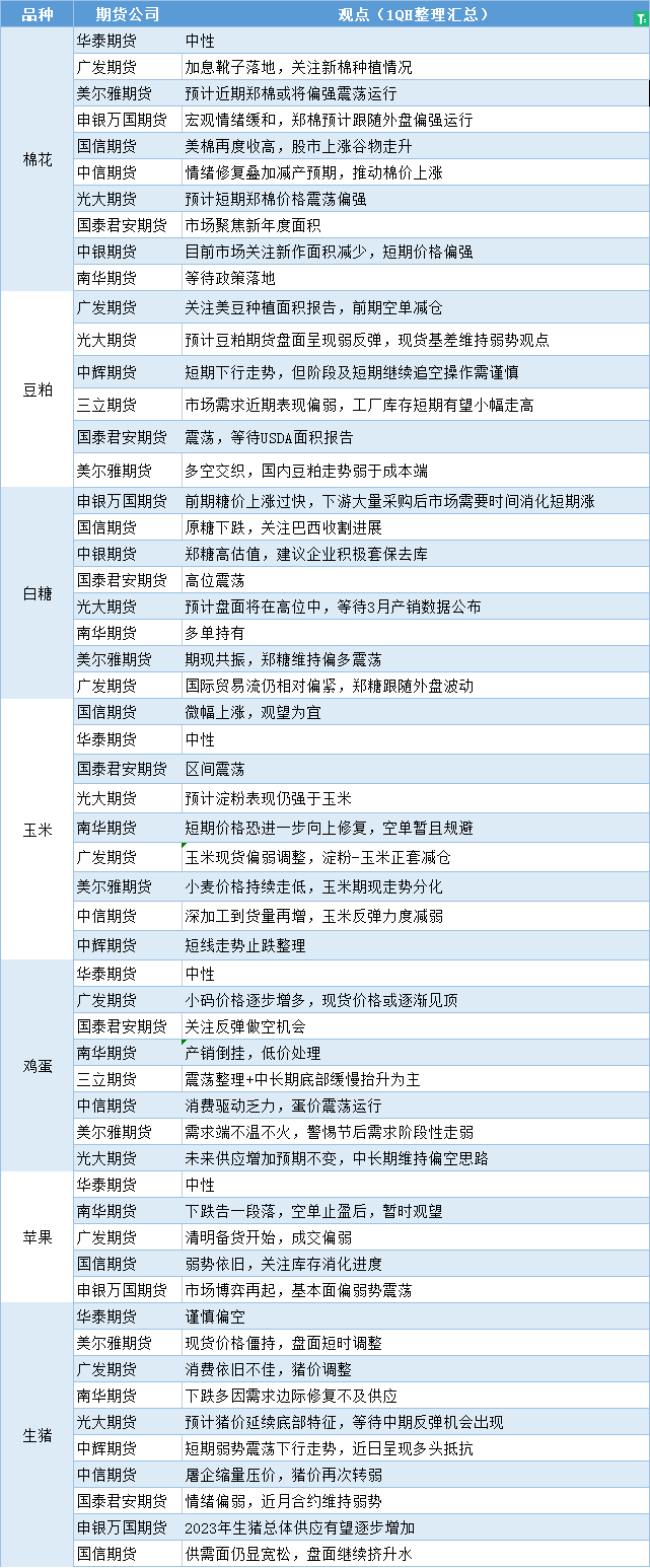 汇通财经APP讯——期货公司观点汇总一张图:3月30日农产品(棉花、豆粕、白糖、玉米、鸡蛋、生猪等)