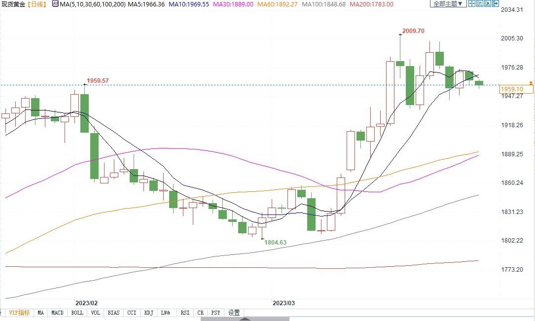 北京时间3月30日10:31,现货黄金报1959.05美元/盎司