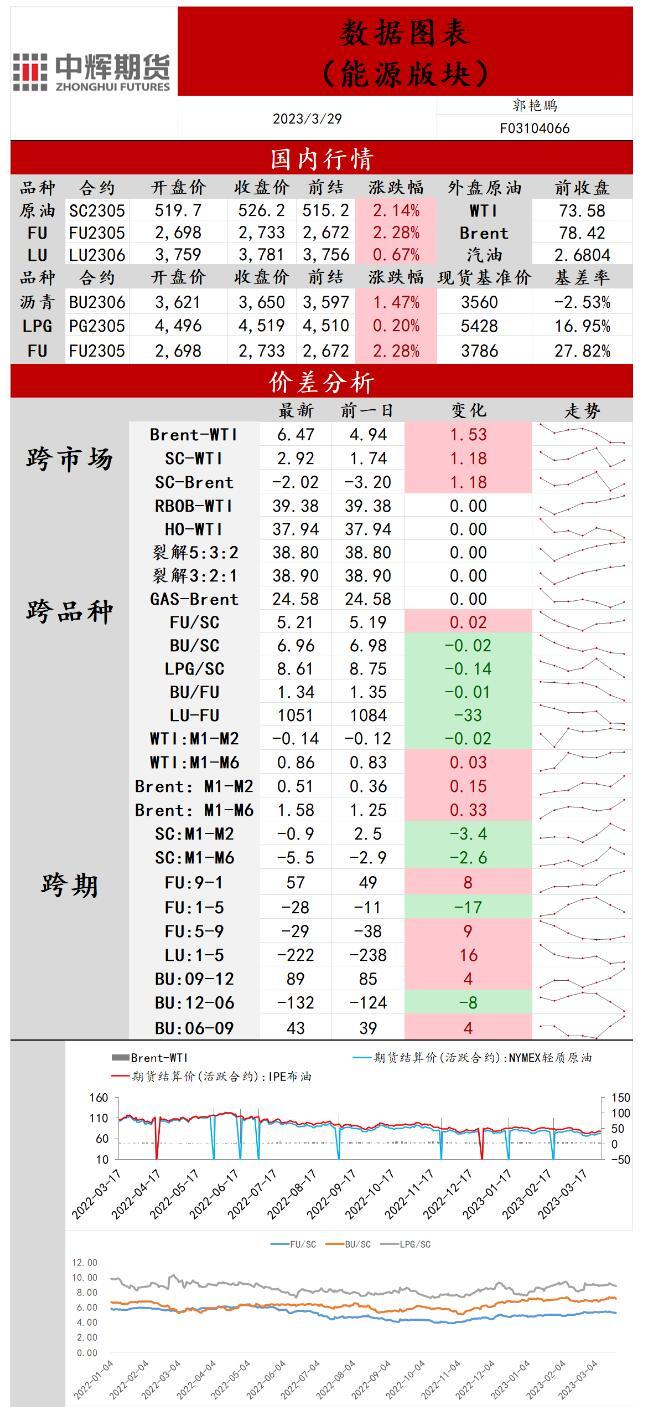 走势研判:银行业危机暂告一段落,全球需求基本面较好,美联储处于加息周期末期,看好原油后市。