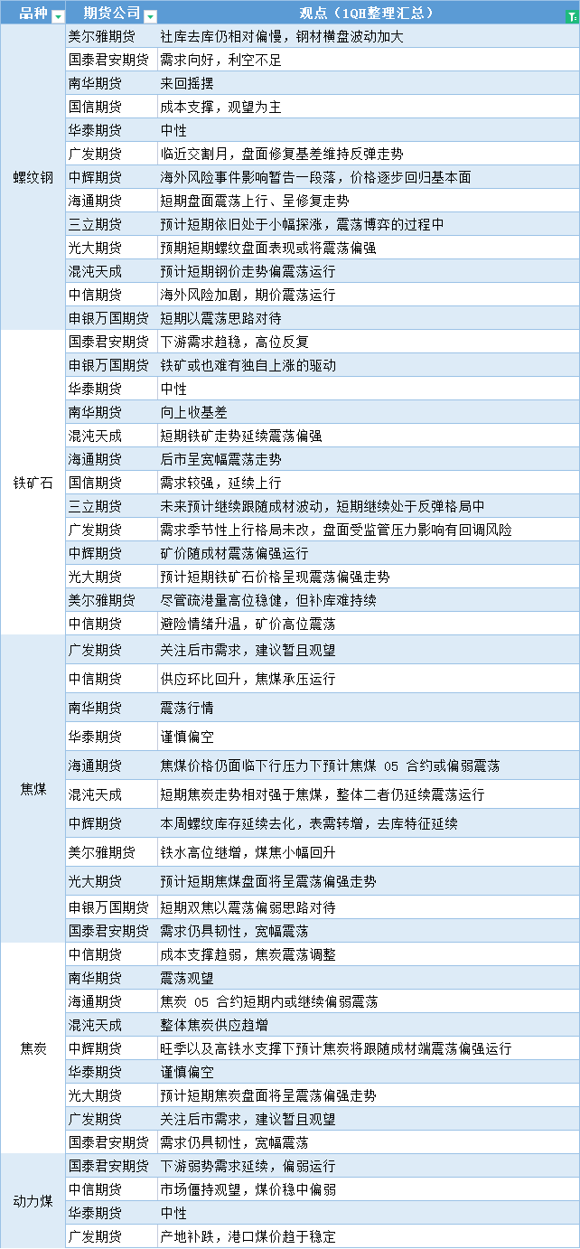 标题:期货公司观点汇总一张图:3月31日黑色系(螺纹钢、焦煤、焦炭、铁矿石、动力煤等)
