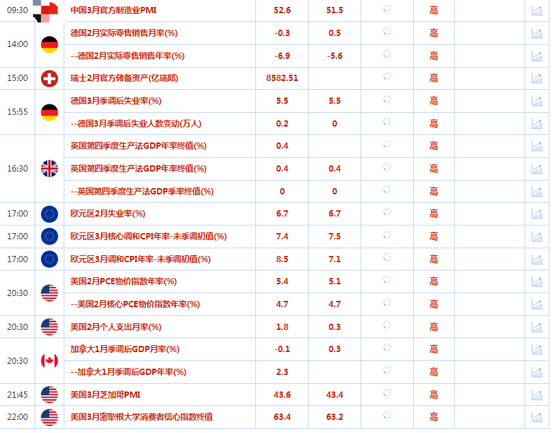 标题:3月31日财经早餐:美元走软和美债收益率下降推动黄金需求,关注美国通胀数据