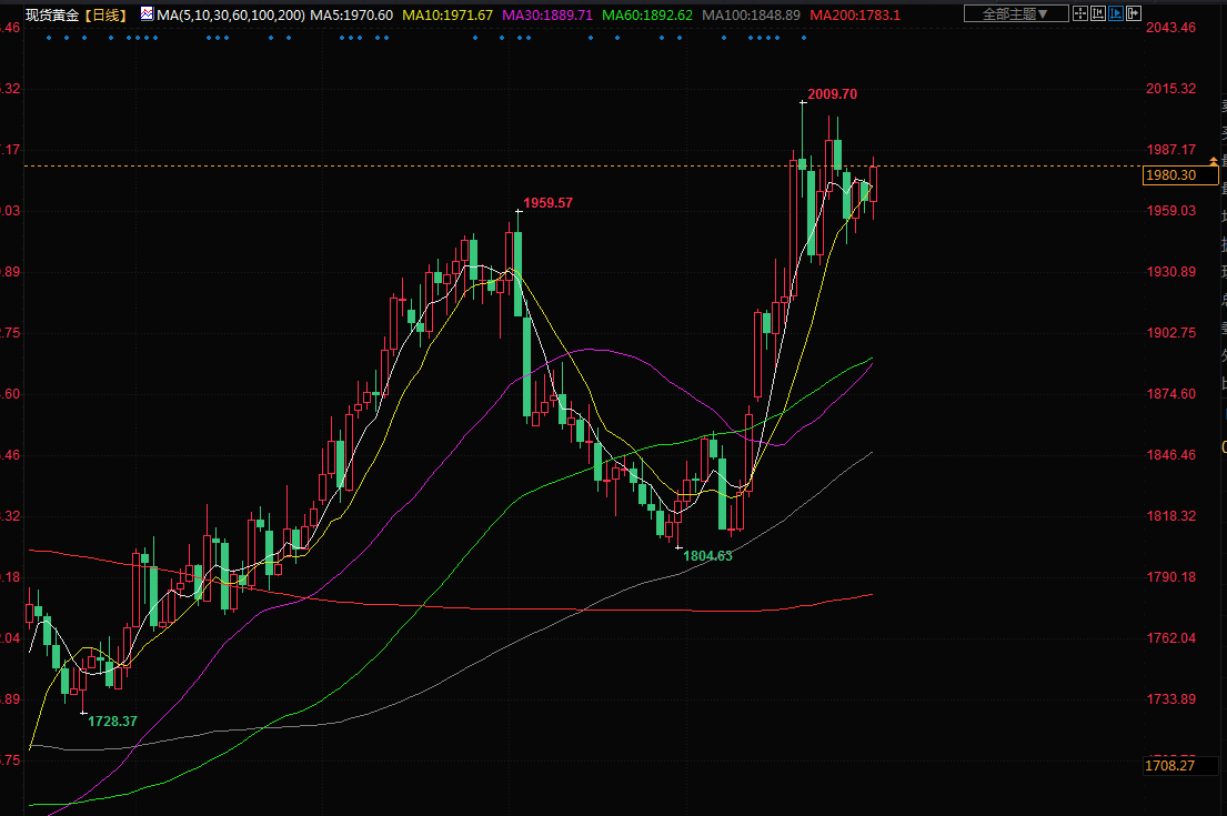 现货白银上涨1.8%,至每盎司23.76美元,铂金上涨2%,至986.59美元,钯金上涨近2%,至1467.87美元。