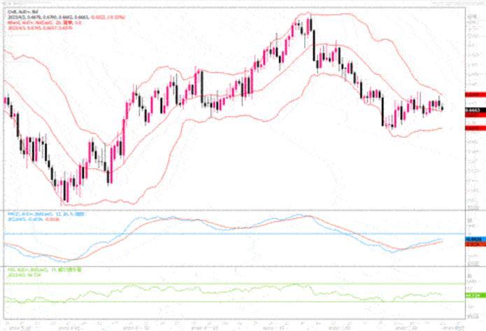 上周五(3月31日)澳元兑美元下跌0.46%,收盘于0.6682。澳洲三年期公债收益率本月下跌65个基点,为2012年来最大单月跌幅。2.94%的收益率也远低于3.6%的隔夜拆款利率。利率期货显示,澳洲央行在本周的4月政策会议上按兵不动的可能性为87%,且今年可能只剩下一次升息。这与3月初的情况大相径庭,当时预计利率将达到4.1%或更高。而现在越来越多机构预测利率将在3.6%水平触顶。如果后续数据表明澳洲的通胀仍旧呈粘性上升,那么就有可能破除市场对于澳联储鸽派加息甚至转而降息的预期,届时澳元或会得到相应的提振。4小时图上,澳元兑美元继续窄幅震荡,波动区间仍旧集中在0.6650-0.6730之间。预料在本周二澳联储利率会议前,都将维持这种窄幅震荡的走势。