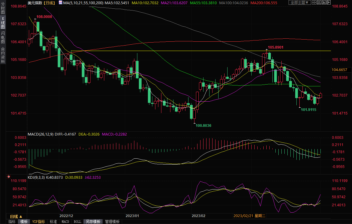 美元指数上周五收涨0.41%,报102.59。美国消费者支出在1月激增后,2月份温和增长,虽然通胀率有降温迹象,但仍处于高位,这可能促使美联储今年再加一次息。