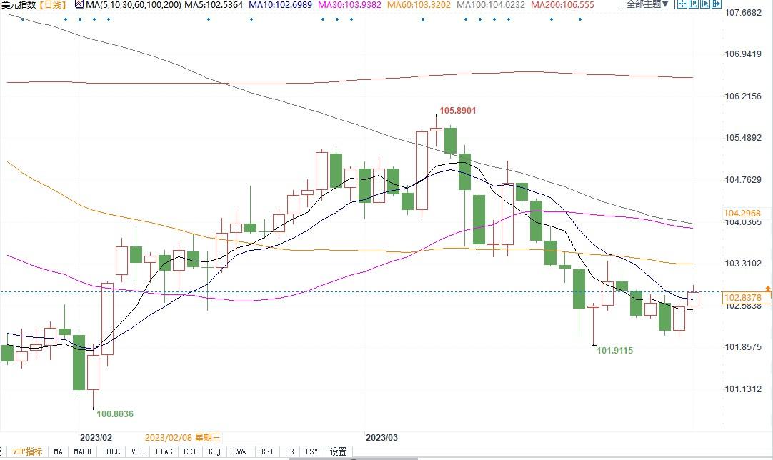 北京时间4月3日9:42,美元指数报102.86