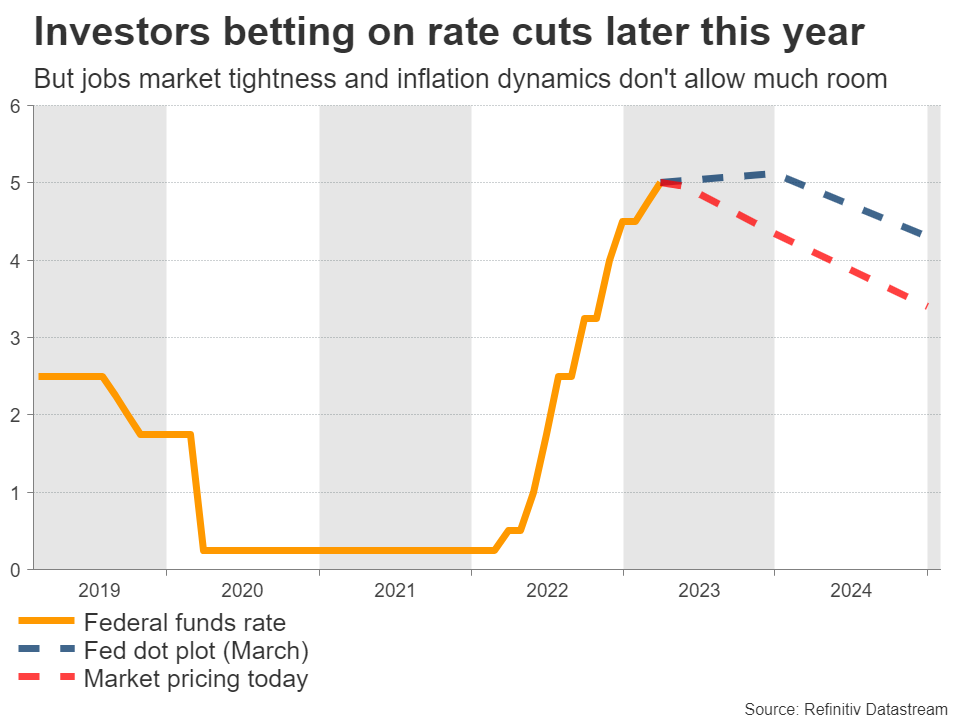 如下图所示,投资者押注美联储将在今年晚些时候降息