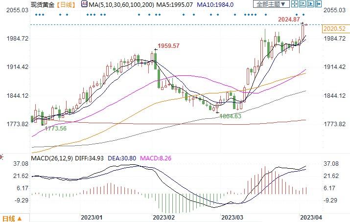 北京时间4月5日11:07,现货黄金报2022.96美元/盎司