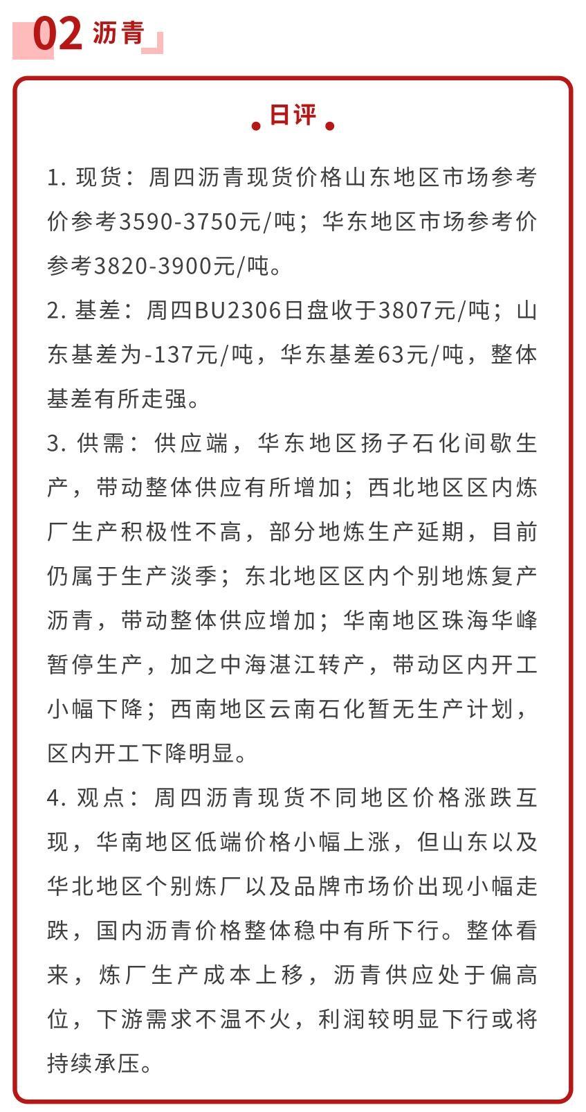 沥青现货:周四沥青现货价格华东地区市场参考价3590-3750元/吨;华东地区市场参考价3820-3900元/吨。