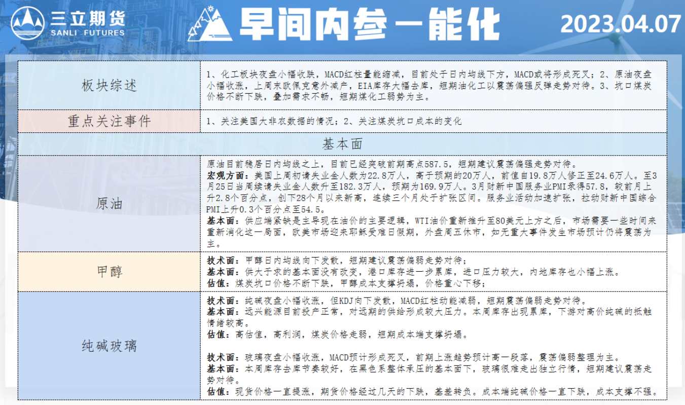 汇通财经APP讯——三立期货早间内参显示,原油短线震荡偏强走势对待;甲醇短期震荡偏弱走势看待;玻璃短期震荡偏弱整理为主。三立期货授权文本由“专注期货开户交易及专业行情分析资讯网站”【一期货 www.1qh.cn】转发。