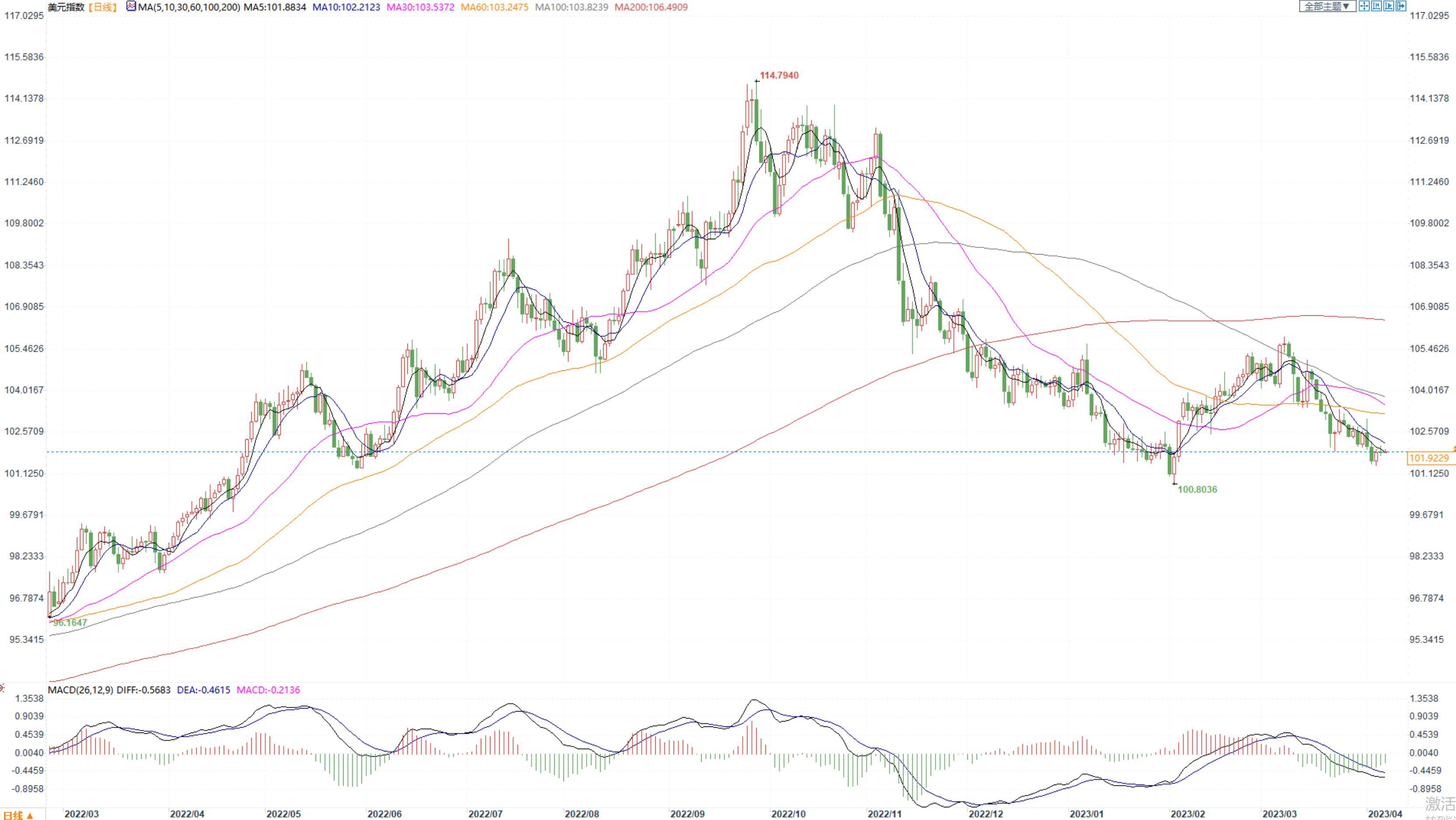 汇通财经APP讯——周五(4月7日)当周美元指数震荡回落,美国经济数据整体表现不佳,且市场对美国经济衰退的担忧升温,施压美元。不过地缘紧张局势带来的避险需求限制美元下行。其他非美方面,欧元兑美元本周震荡攀升,欧洲央行加息支持欧元。英镑兑美元本周攀升,宏观经济预期改善支持英镑。