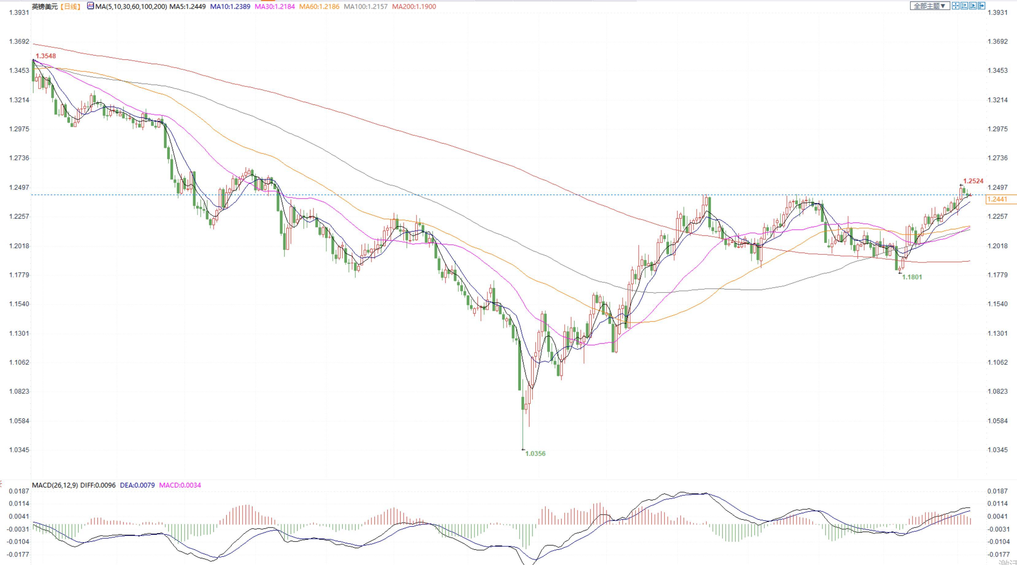 英镑兑美元本周震荡攀升,主要受益于美元走软,宏观经济预期改善也支持英镑