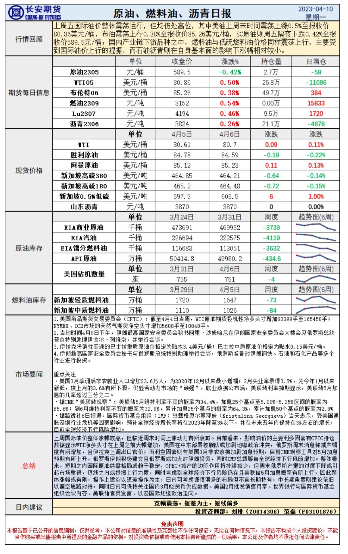 标题:长安期货4月10日原油报告:非农加剧加息预期,俄油过量减产或存短暂偏多机会