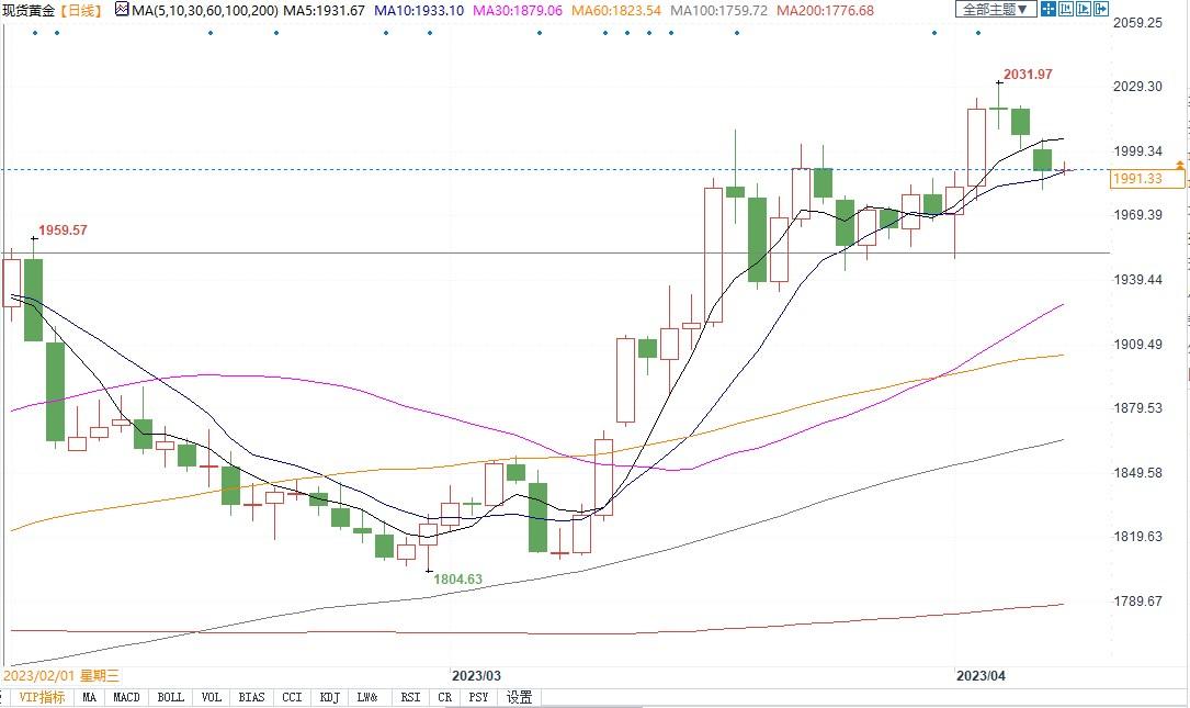 北京时间4月11日10:03,现货黄金报1992.05美元/盎司