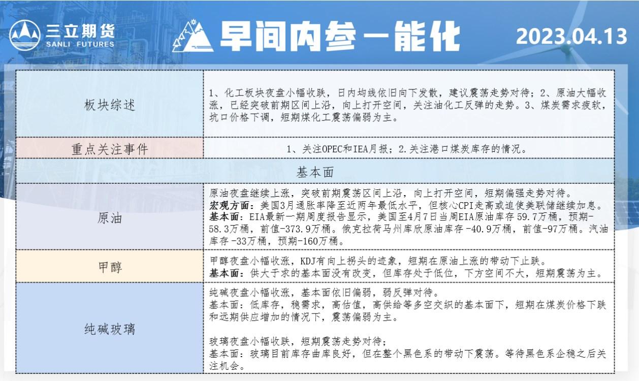 标题:三立期货4月13日早间内参——能化