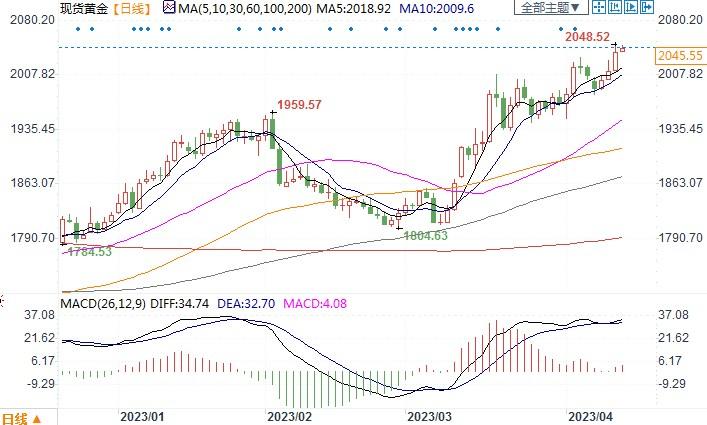 北京时间4月14日11:21,现货黄金报2045.55美元/盎司