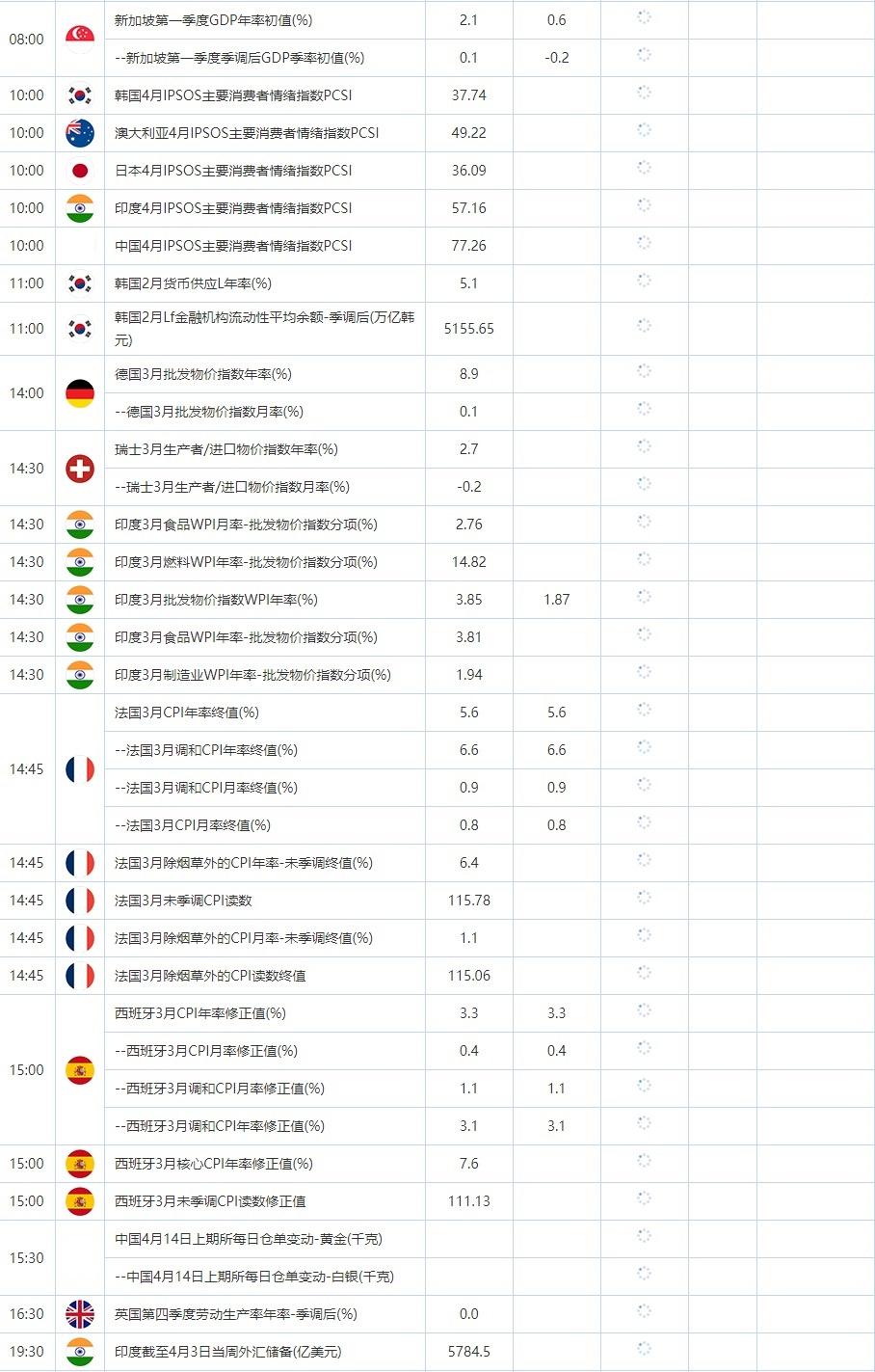 后续及时更新的财历数据请关注:【汇通财经4月14日财经日历】
