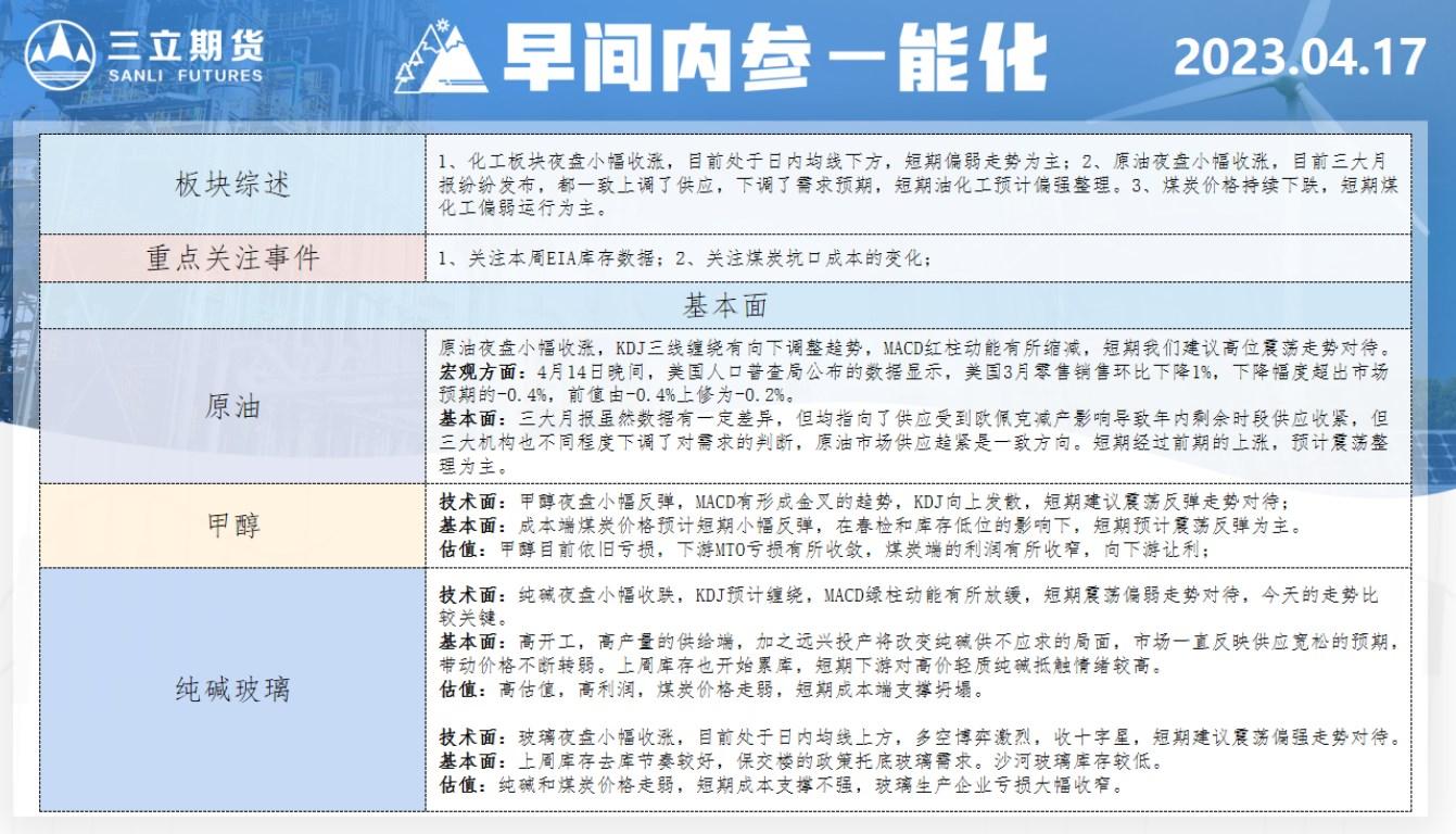 标题:三立期货4月17日早间内参——能化