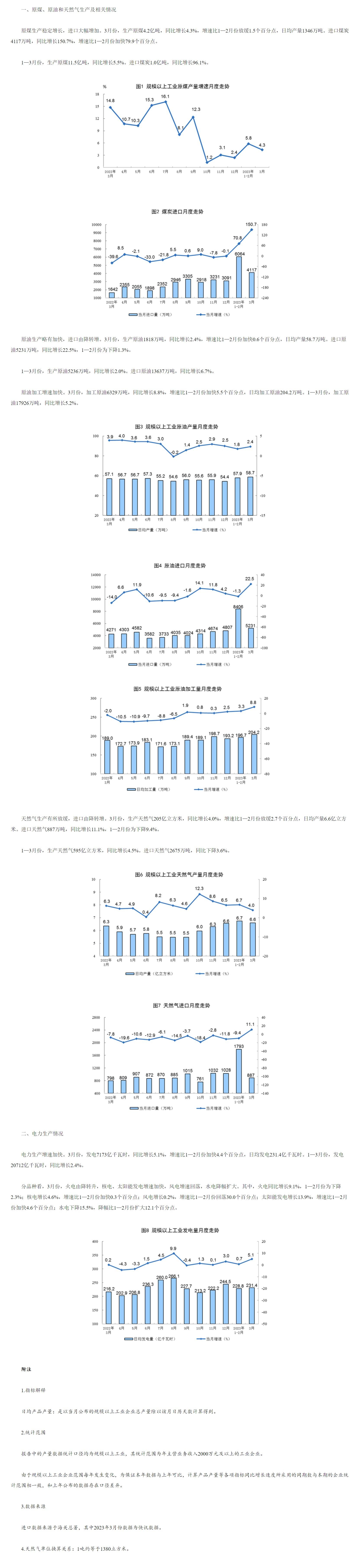 标题:国家统计局:2023年3月份能源生产情况