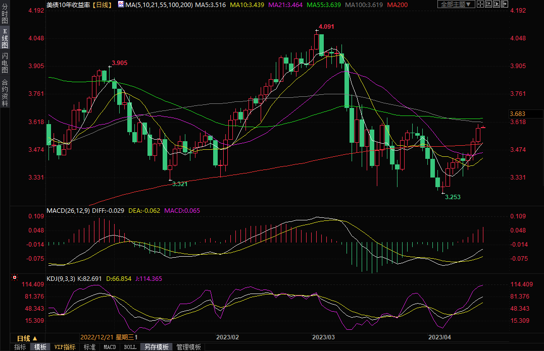 美国10年期国债收益率周一上涨近2%至3.591%,为连续三个交易日上涨,盘中最高触及3.608%,为3月29日以来新高。美国两年期国债收益率周一上涨2.07%,收报4.188%,盘中最高触及4.207%,为3月23日以来新高。
