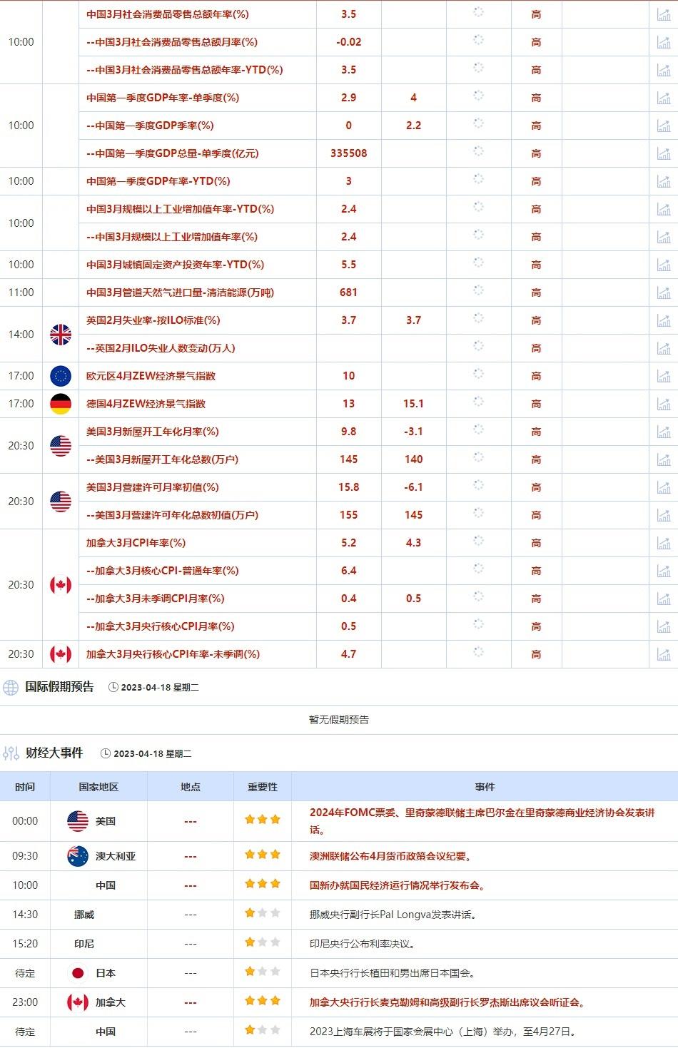 与此同时,衍生品市场的定价显示,交易员认为美联储5月份再次加息25个基点的可能性约为84%,高于上周的约69%。此前,美国零售销售数据上修,一位美联储官员表示,加息尚未达到预期效果,且消费者通胀预期上升。CMC Markets市场分析师Tina Teng表示,摩根大通、花旗集团和富国银行等银行业绩好于预期,也推高了美国利率预期,她认为“美国经济并没有那么糟糕。