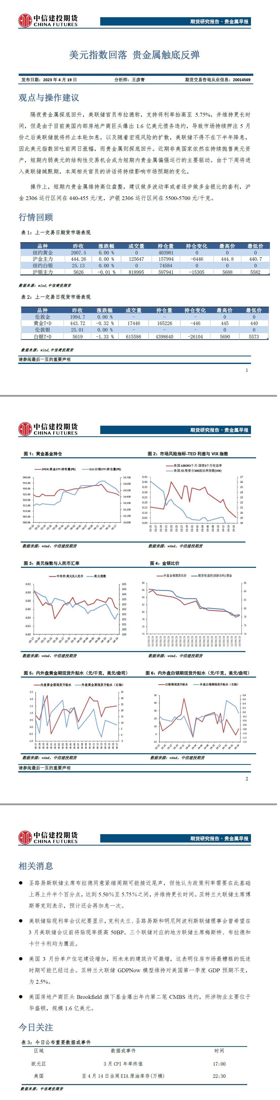 标题:中信建投期货4月19日贵金属早报:美元指数回落 贵金属周一触底反弹