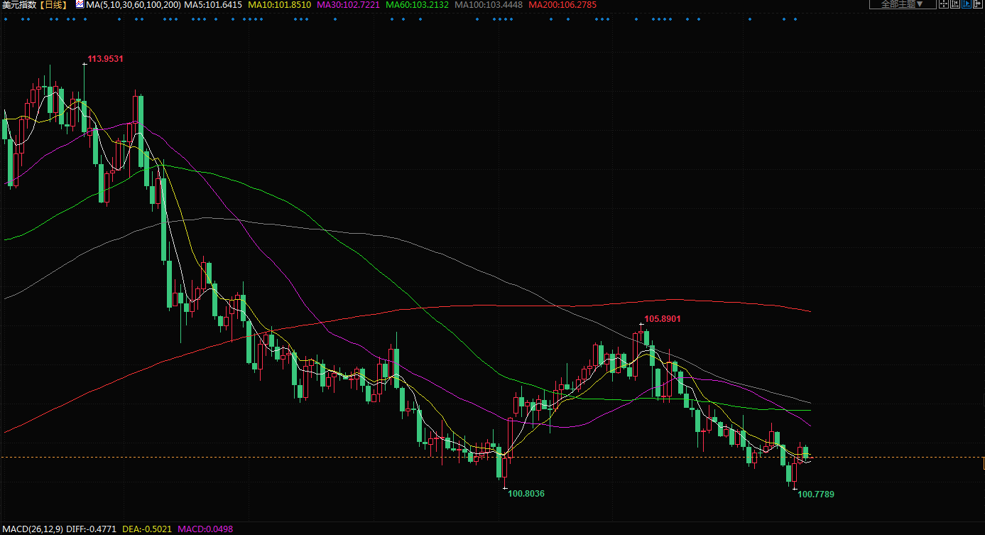 美元指数下滑了0.362%。该指数在过去两个交易日上涨超过1%。