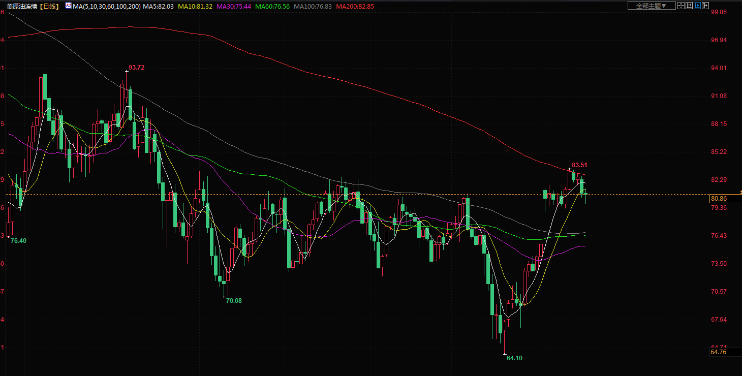 布伦特原油期货收高0.01%,报每桶85.25美元,而美国原油期货收高0.04%,报80.86美元。