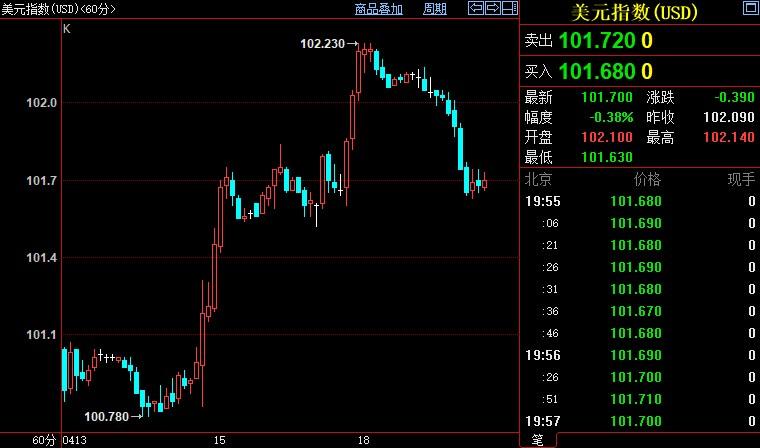 北京时间19:56,现货黄金上涨0.42%至2003.39美元/盎司;COMEX期金主力合约上涨0.45%至2016.0美元/盎司;美元指数下跌0.39%至101.704。