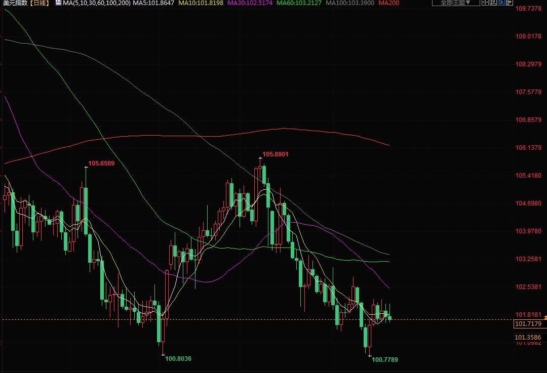 美元指数持平于101.76,并势将录得约0.2%的周涨幅,这是2月底以来的首次。