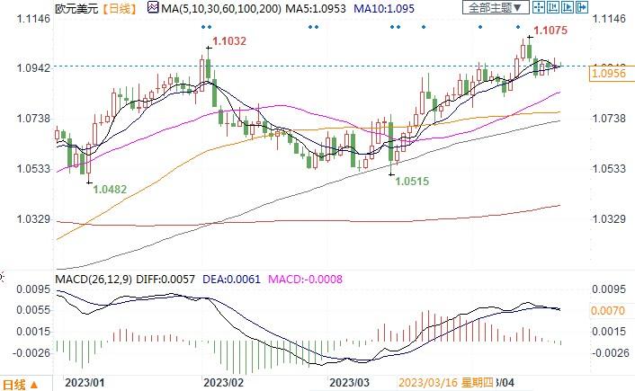 北京时间4月21日14:13,欧元兑美元报1.0955/56