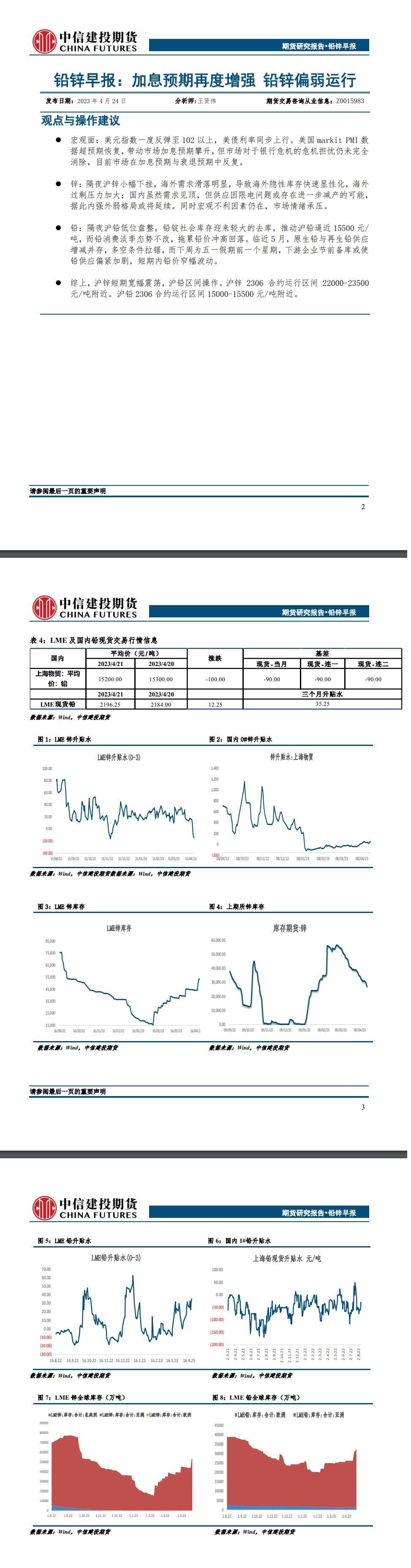 标题:中信建投期货4月24日铅锌报告:加息预期再度增强,铅锌偏弱运行