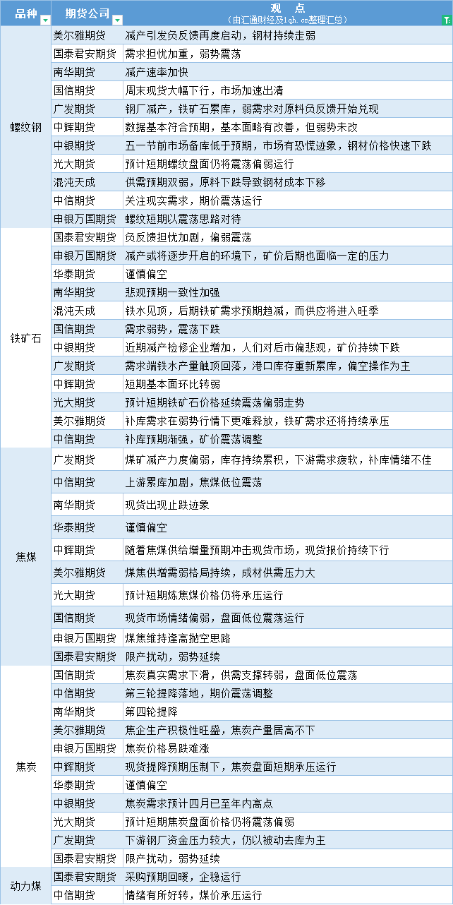 汇通财经APP讯——期货公司观点汇总一张图:4月24日黑色系(螺纹钢、焦煤、焦炭、铁矿石、动力煤等)