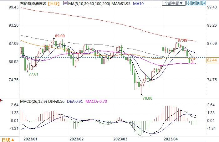 北京时间4月25日11:20,布伦特原油连续报82.50美元/桶