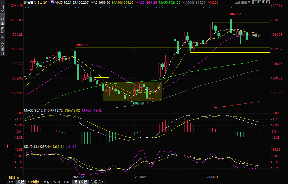 整体来看,金价仍处于高位震荡走势,虽然银行业动荡担忧挥之不去,美元指数偏向弱势,给金价提供支撑,但市场对美国债务违约的担忧情绪有所降温,美债收益率反弹,隔夜金价冲高回落,多头士气有所回落,金价短线下行风险有所增加,留意1980关口附近支撑。不过,市场预计周五将出炉的美国3月PCE数据会显示美国通胀增速放缓,该数据出炉前,金价也仍留有震荡走高的机会。北京时间10:17,