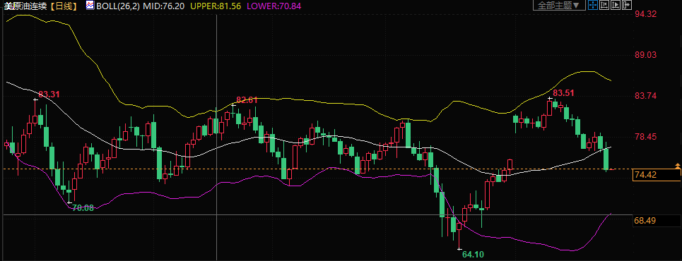 总体来看,尽管美国原油库存下降超预期,但由于经济担忧情绪升温,美国消费者信心在4月份降至九个月低点,加剧了今年经济陷入衰退的风险。关键的美国3月份制造业资本财的新订单下降幅度也超过预期,出货量也有所下降,加之美国第一共和银行陷入困境激起市场对美国银行业危机的担忧,油价空方力量强劲,且技术面跌破布林带中轨,市场下行风险增加,维持油价震荡下行观点。北京时间8:23,