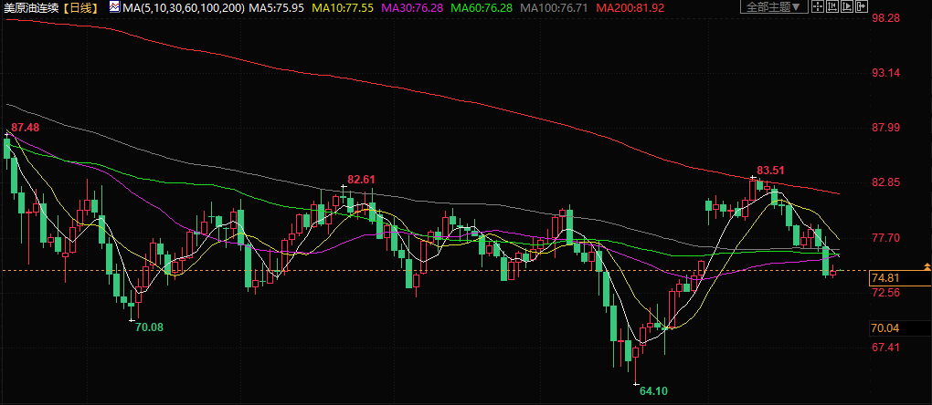 总体来看,油价因全球石油市场平衡的,且地缘局势紧张限制了跌幅;尽管对经济衰退担忧尚存,但美国对俄罗斯和伊朗增加新制裁措施,加剧了不确定性风险,后续关注俄方相关回应措施,短期油价或维持在75美元/桶关口附近震荡。北京时间8:10,