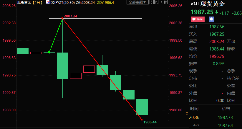 汇通财经APP讯——北京时间周四(4月27日)20:30,美国公布一季度国内生产总值(GDP)数据大幅低于预期,但一季度核心PCE走高,支持美联储5月继续加息。截至发稿,现货黄金下跌逾11美元至1986.44美元/盎司,累计波动近17美元。