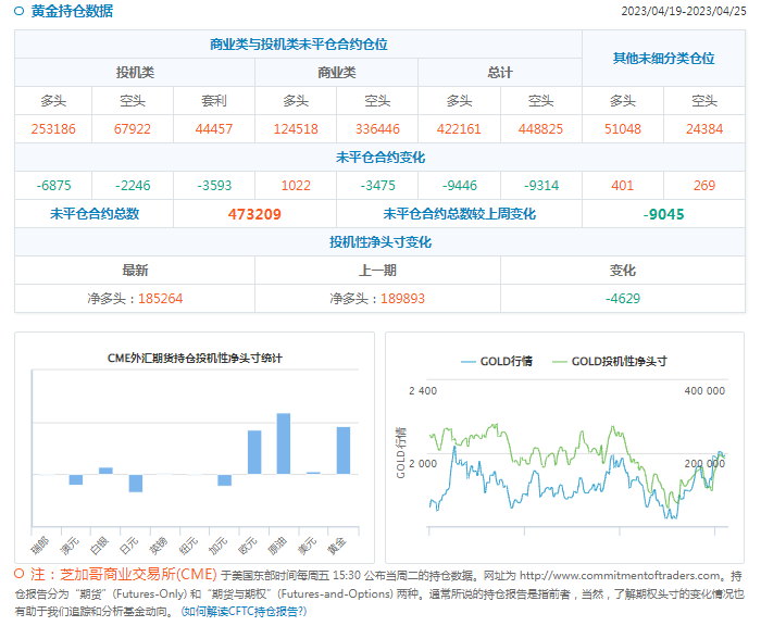 汇通财经APP讯——汇通财经据CFTC官网持仓数据:截至4月25日当周,COMEX黄金投机者将净多头头寸减少1078手,至133174手;石油投机者将美原油净多头头寸减少19179手,至180443手。
