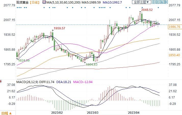 北京时间4月28日14:00,现货黄金报1986.76美元/盎司