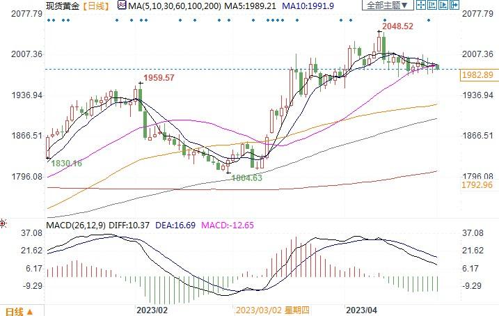 北京时间5月1日10:40 现货黄金 报 1982.89 美元/盎司