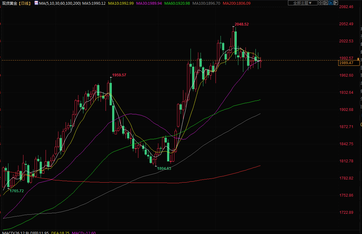 随着银行业危机的展开,黄金在4月中曾攀升至一年来的峰值2048.71美元。