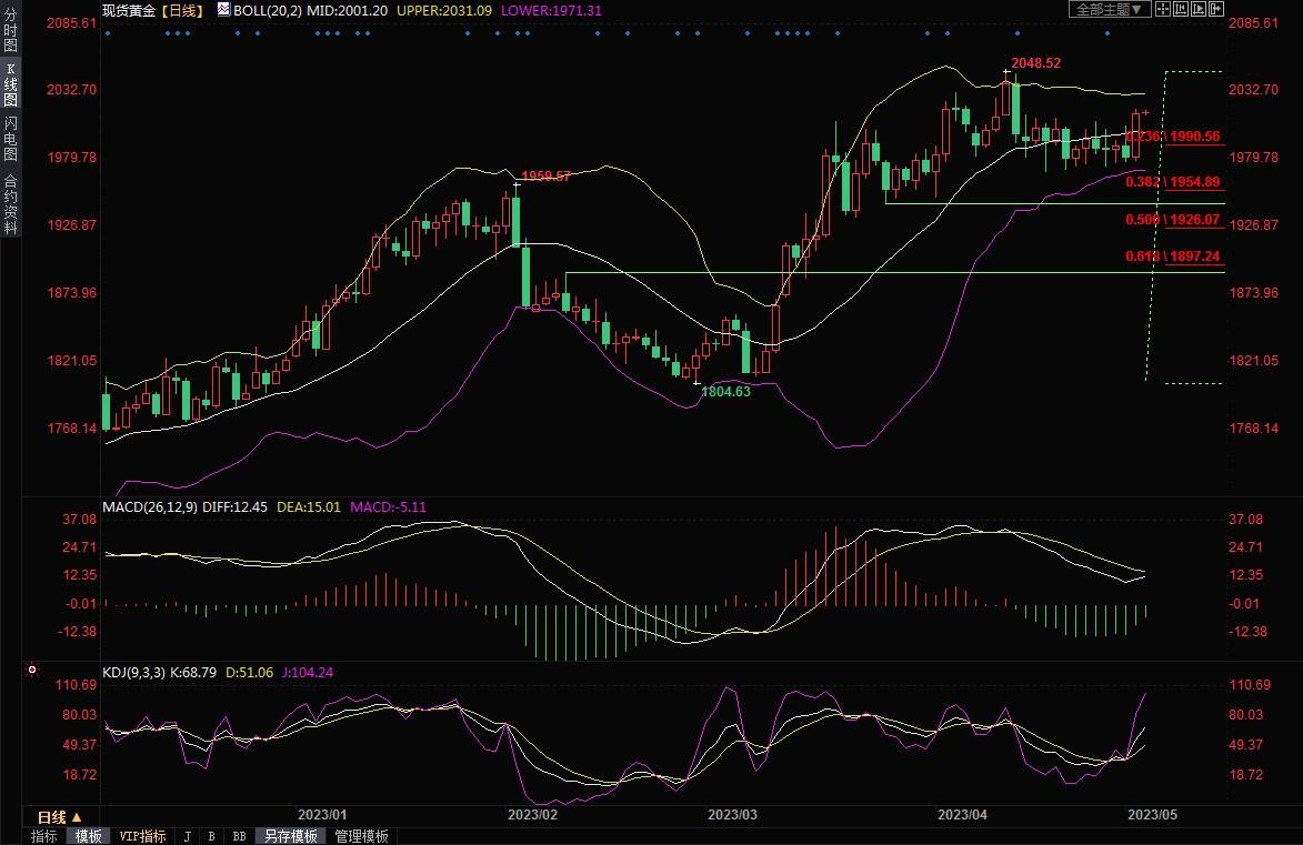 整体来看,银行业动荡危机和美联储债务违约危机、美国经济数据放缓,市场对美联储6月份降息预期升温,美元和美债收益率下跌,偏向金价继续震荡走高,技术面看涨信号也有所增强,金价有望上探近期高点2048附近阻力,甚至是向历史高点2075附近位置发起冲击,