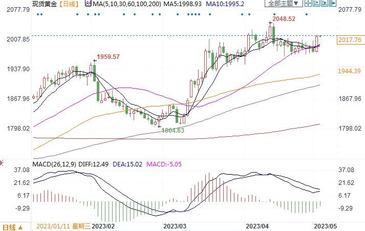 市场预计,美联储再次加息25个基点的可能性接近90%。但金价的走势正在忽略了本次5月份的加息,近期宏观经济数据显示出足够的降温迹象,使得有必要暂停这场40年来最快的加息周期。