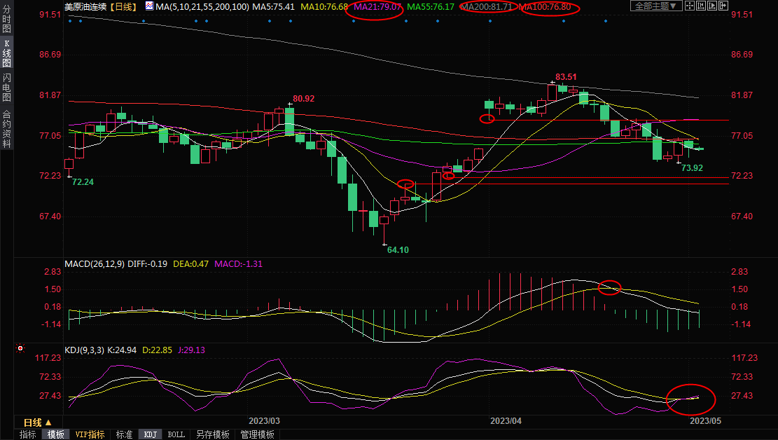 若跌破布林线下轨75.55附近支撑,则油价可能会加速下跌,下方进一步支撑在3月28日低点72.18附近,3月22日高点支撑在71.29附近,然后是70整数关口附近支撑。