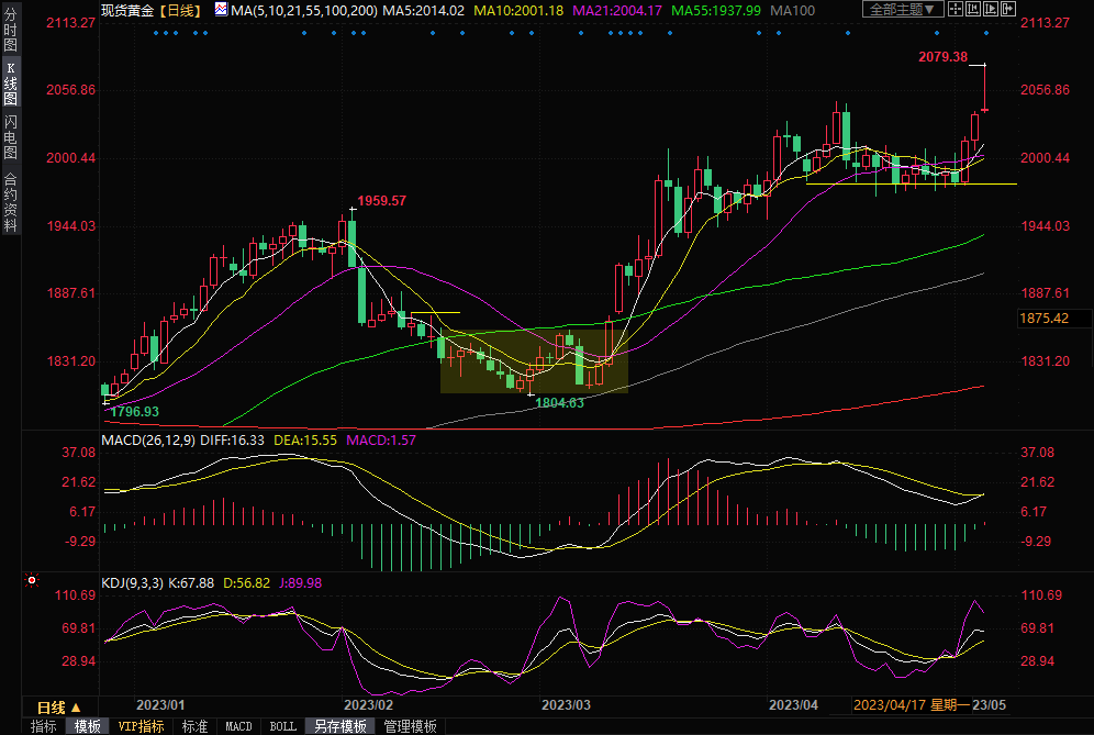 汇通财经APP讯——周四(5月4日)亚洲时段,现货黄金冲高回落,一度刷新历史高点至 2079.38美元/盎司,因为美联储隔夜如期加息25个基点,但暗示未来将暂停加息,市场对美联储9月份降息预期升温,美元和美债收益率大跌,给金价提供支撑。地缘局势担忧和美国债务违约危机的担忧也给金价提供避险支撑。