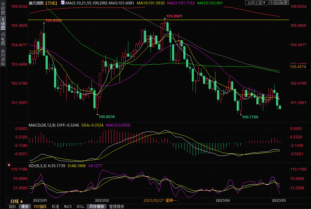 美元指数目前下跌0.12%,报101.10,前一交易日跌幅超过0.6%。